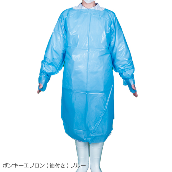 PEエプロン袖付き 厚0.04mm ポンキー前掛 ブルー