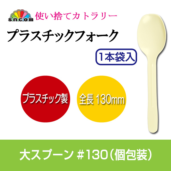 使い捨て大スプーン130mm(個包装) アイボリー1,000本入 [17-152-1000P]